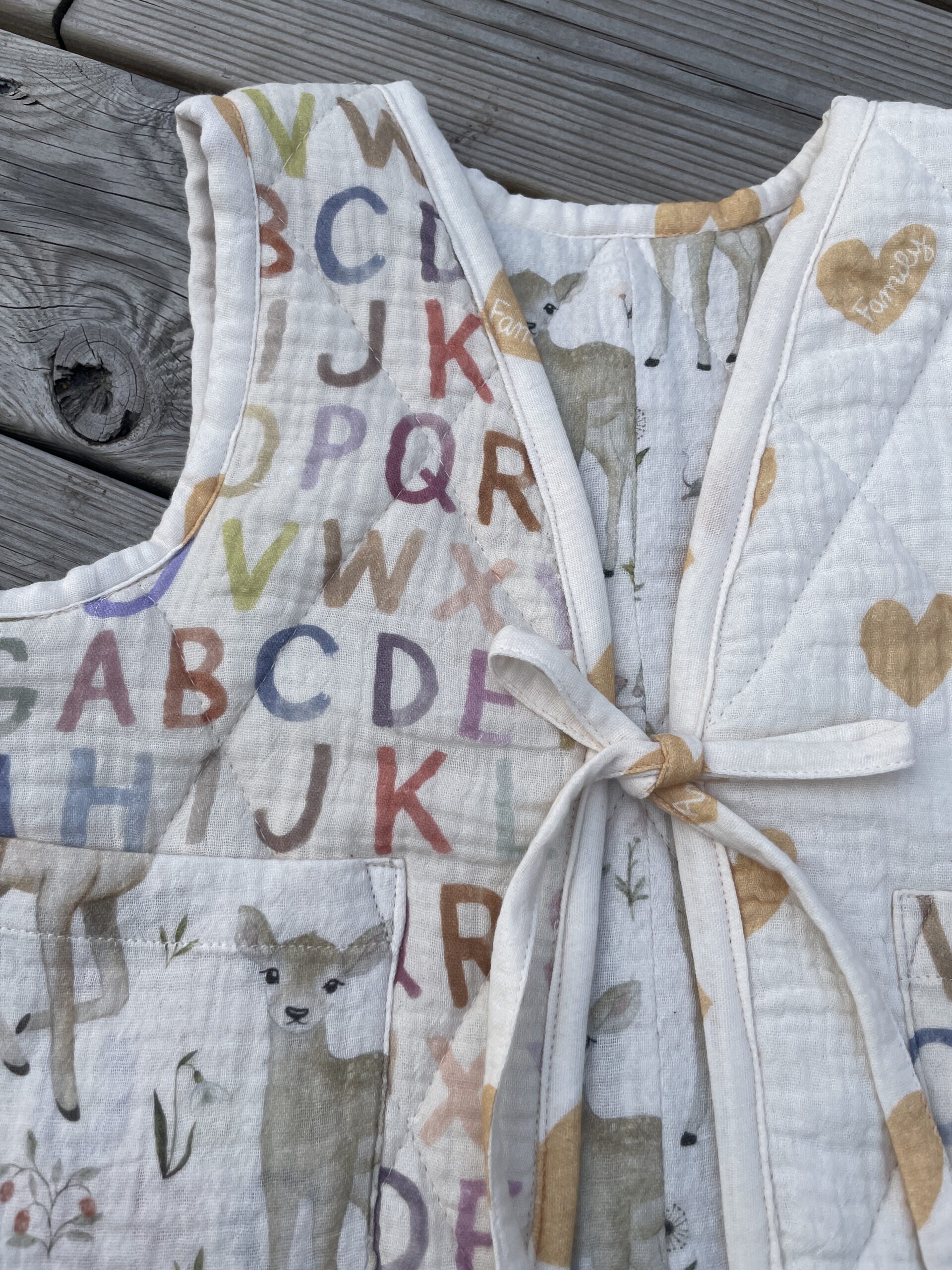 Mjuk lekfull väst till barn med fina detaljer som fickor och volang.