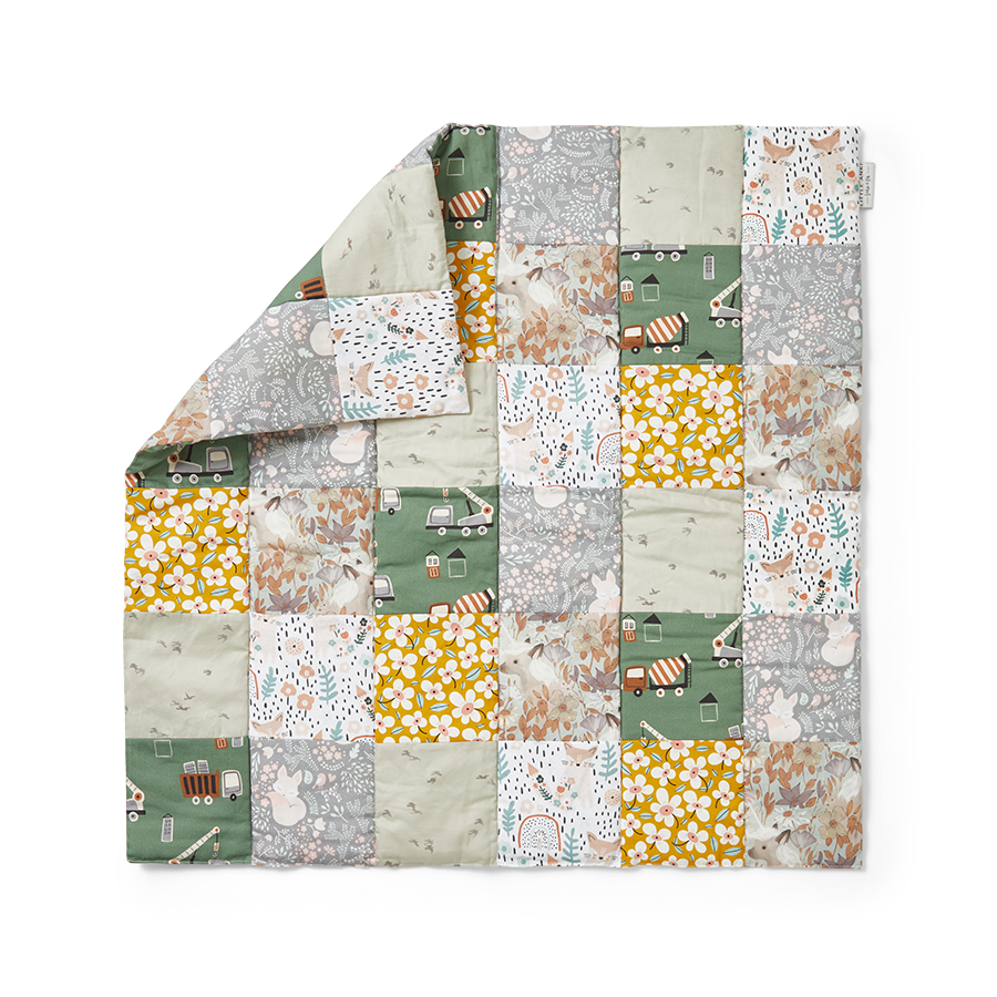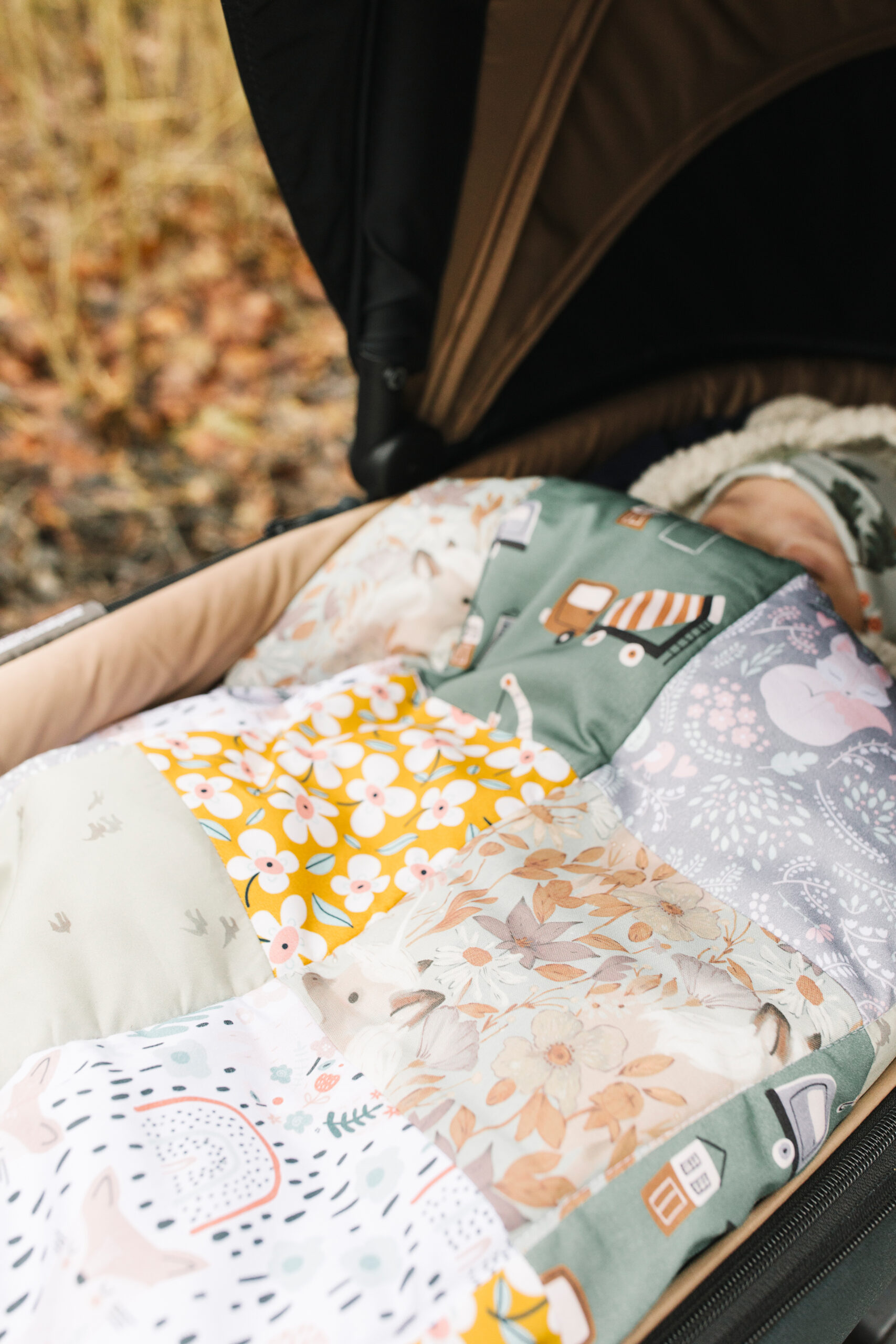 Lite tjockare än en filt men ändå tunnare än en lekmatta. Passar bra som ett tjockare täcke i vagnen, som filt att ligga på eller kanske som ett täcke på sängen!