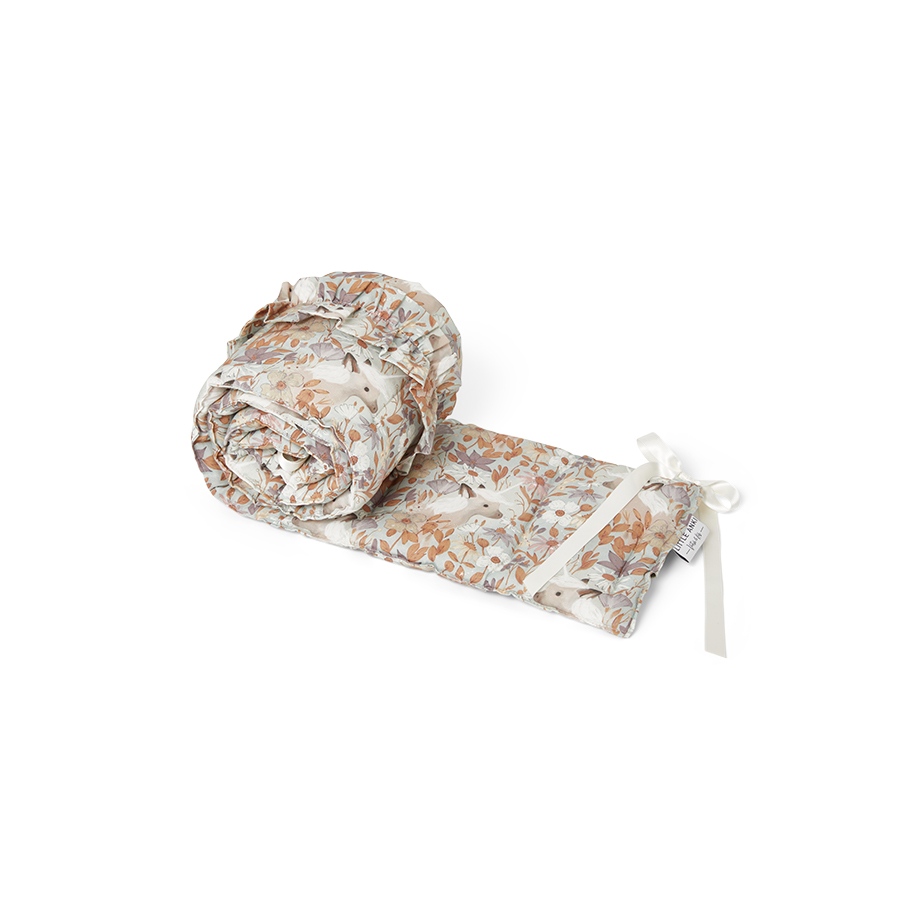 Tjockt och mjukt spjälskydd för ökad stabilitet, allt för att din bebis ska sova tryggt och säkert. Sidenband att knyta fast med som extra detalj.